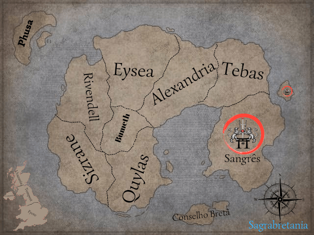 Sangrês é a capital do continente Da Sagrabretania, um reino próspero e influente. Sua arquitetura é marcada por construções feitas em forma de pirâmides, que dão um ar majestoso e grandioso à cidade. A principal construção é conhecida como o Arthar, uma pirâmide imponente que serve como centro da cidade.