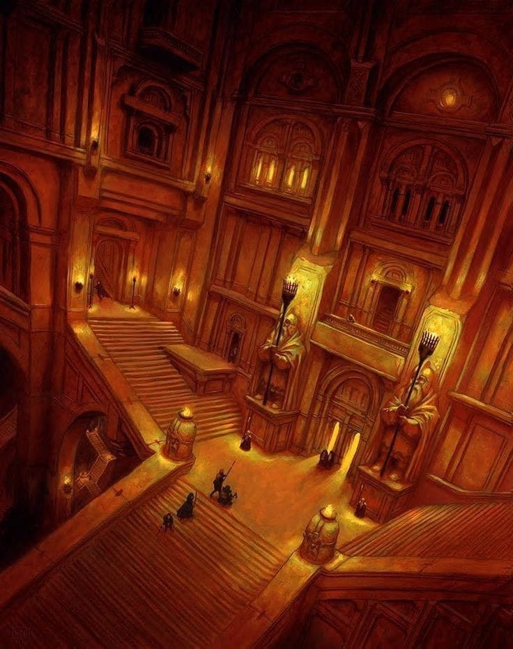 O distrito governamental e jurídico é composto por prédios imponentes e majestosos, que abrigam os órgãos governamentais e judiciais. O Palácio do Conselho é o edifício mais importante da cidade, onde os conselheiros do reino se reúnem para discutir e tomar decisões importantes.