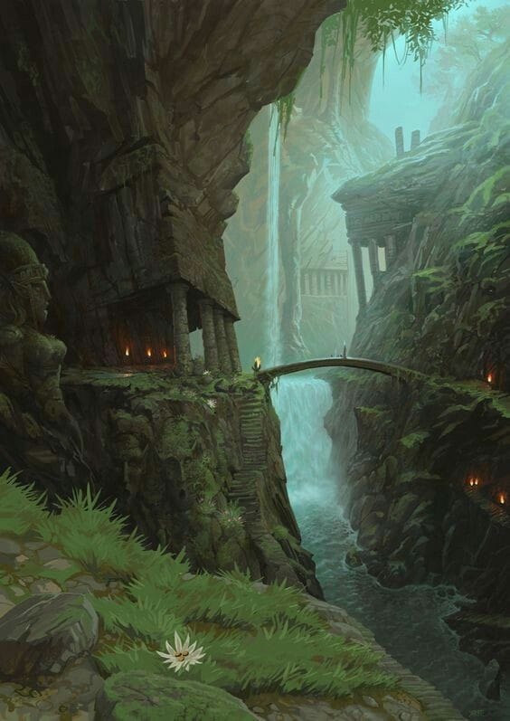 O Lago das Águas Gêmeas: um lago sagrado localizado nas montanhas, cujas águas são cristalinas e refletem as montanhas ao seu redor. Acredita-se que o lago seja o lar de espíritos das águas e que ofereça inspiração e criatividade para aqueles que o visitam.